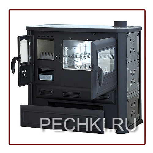 На изготовление печей идет качественный термостойкий чугун – классика в печном деле. Из него производят печные дверцы и варочные плиты. На корпуса идет лучшая жаростойкая сталь.