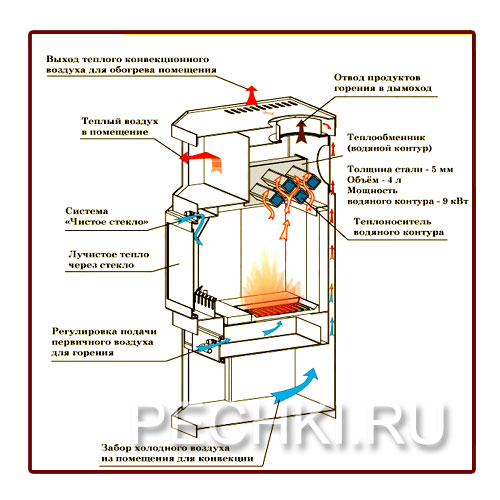опительный агрегат, сочетающий в себе качество открытого камина - возможность наблюдать за живым огнем,