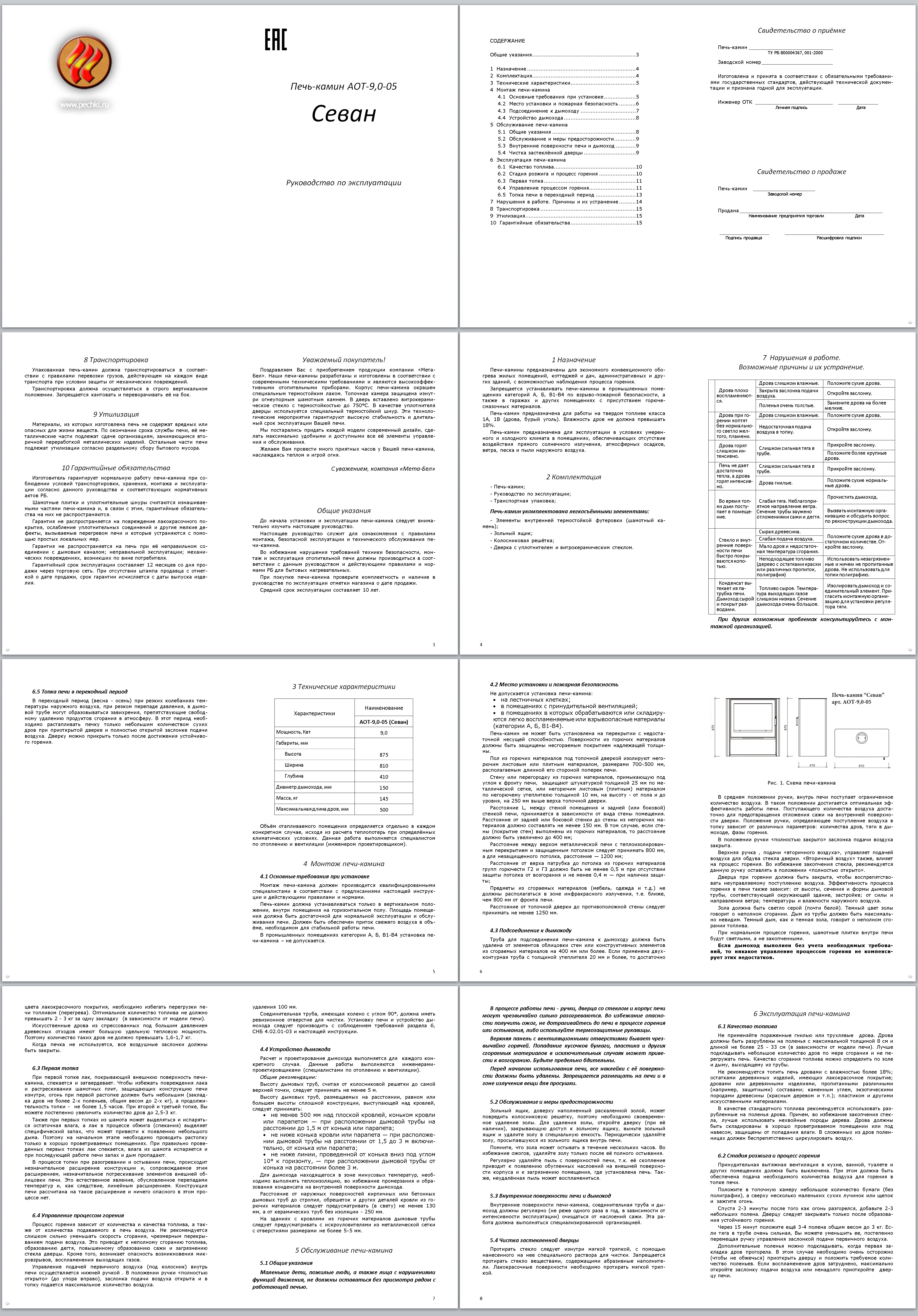 :: инструкция по эксплуатации печей каминов СЕВАН 7В МЕТАБЕЛ :: схема устройства печей каминов СЕВАН 9 МЕТАБЕЛ