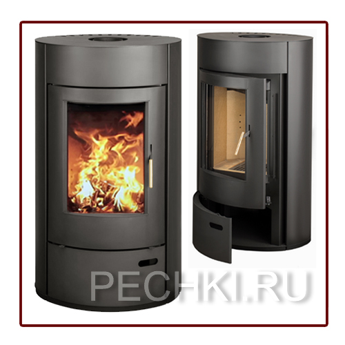 Камин ДУНАЙ от МЕТАБЕЛ – воплощение максимума технологичности и стиля. Огромное плоское панорамное окно 52 на 36 см, с диагональю 62 см. За счет цилиндрической формы самой печи и дверцы создается правдоподобная иллюзия выпуклости стекла. Овальная форма позволяет разместить печь в углу или у стены.