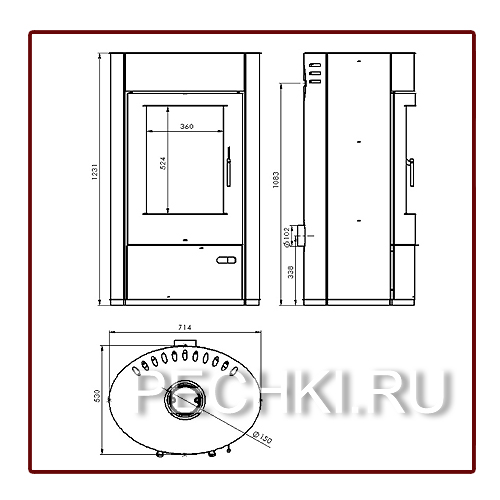 Дымоход 150мм может быть подключен сверху или сзади. В комплекте есть заглушка.