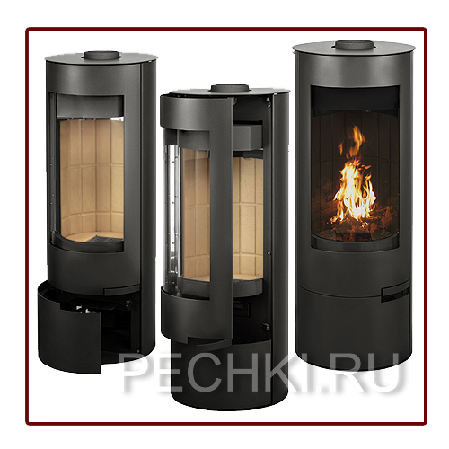 Вся печь работает как большой конвектор. Воздух проходит через нижнюю нишу и специальные отверстия, поднимается внутри кожуха печи и выходит через отверстия на крышке и сзади.