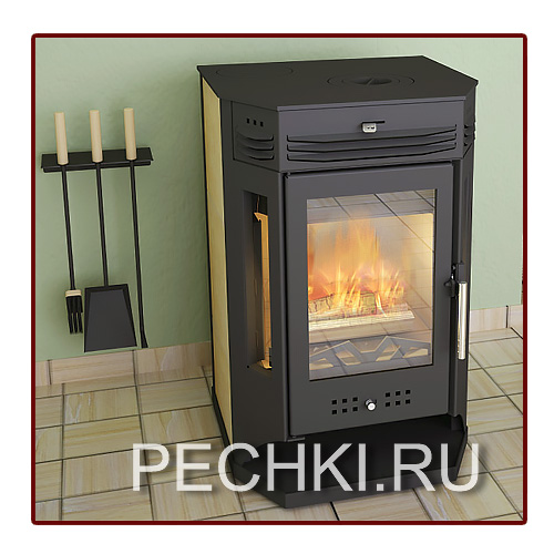 оборудован дверцей с жаропрочным стеклом «Neoceram N-O». Есть система «чистое стекло». Печь-камин оснащен двойным пламегасителем из нержавеющей стали, толщина дополнительного пламегасителя 5 мм. Для уплотнения разъемов используются современные уплотнительные материалы. Особенность данной модели — чугунный патрубок, чугунный колосник.