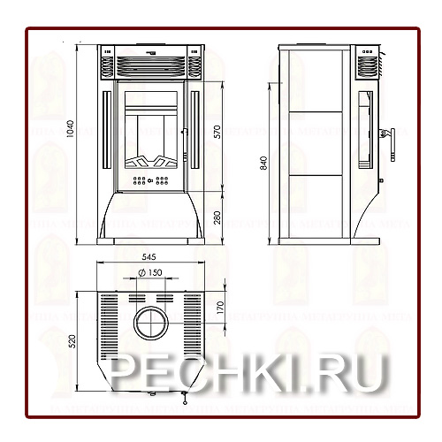 Технические характеристики: Площадь отапливаемого помещения (м2) до 90 Мощность(кВт) 9 Глубина (мм) 520 Ширина (мм) 545 Высота (мм) 1040 Масса (кг) 140 Внутренний диаметр дымохода (мм) 150 Тип: каминетти дровяная печь камин Производитель: МЕТА METAFIRE EUROKAMIN, Россия