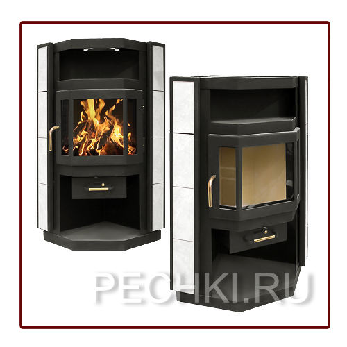 Угловая небольшая печь камин НЕВА (6 кВт) пользуются спросом именно из-за своей формы, т.к. при установке камина в угол экономится много места и при необходимости проще отопить одним камином целых три смежных комнаты. Печь камин НЕВА углового исполнения - современный, высокоэффективный отопительный агрегат, сочетающий в себе качество открытого камина - возможность наблюдать за живым огнем, наслаждаться конвекционным теплом, быть в абсолютной безопасности от искр и сажи, регулировать силу пламени и длительность горения с безопасностью и эффективностью отопления закрытой печи. Наряду с лучистым теплом через прозрачное стекло печь камин НЕВА дает преимущественно (до70%) конвекционного тепла. Между внутренним и внешним корпусами располагаются каналы, в которые поступает холодный комнатный воздух и, нагреваясь, опять возращается в помещение. В результате уже через 5-20 минут воздух в помещении прогревается. Благодаря регулировке тяги температуру в помещении можно поддерживать комфортно равномерной. При полной загрузке дров (3-4кг) в режиме долгого горения печь камин НЕВА поддерживает тепло в течении 6-8часов. В качестве топлива используются сухие дрова или брикеты бурого угля. Печь камин НЕВА предназначена для эксплуатации в условиях умеренного и холодного климата в капитальных жилых помещениях. Корпус печи камина НЕВА выполнен из листовой стали. Все металлические поверхности окрашены черной жаропрочной краской. Боковая поверхность печи камина НЕВА облицована керамической плиткой. Топочная камера печей каминов НЕВА выложены шамотной (огнеупорной) плиткой. К достоинствам внутренней футеровки следует отнести то, что она выравнивает перепады температур, а также позволяет дольше сохранять тепло, когда пламя уже погасло. Кроме того благодаря применению шамотных плиток, все печи камины ремонтнопригодны - каждая плитка легко заменяется в случае какого-либо повреждения. Печи камины НЕВА изготовлены с применением импортных комплектующих в соответствии с немецкими технологическими стандартами, адаптированы к климатическим условиям в России. Печь камин НЕВА предназначена для обогрева жилых помещений, коттеджей и дач, площадью до 60 кв.м. Категорически запрещается применение каменного угля и его производных. Срок службы печи камина не менее 10 лет.